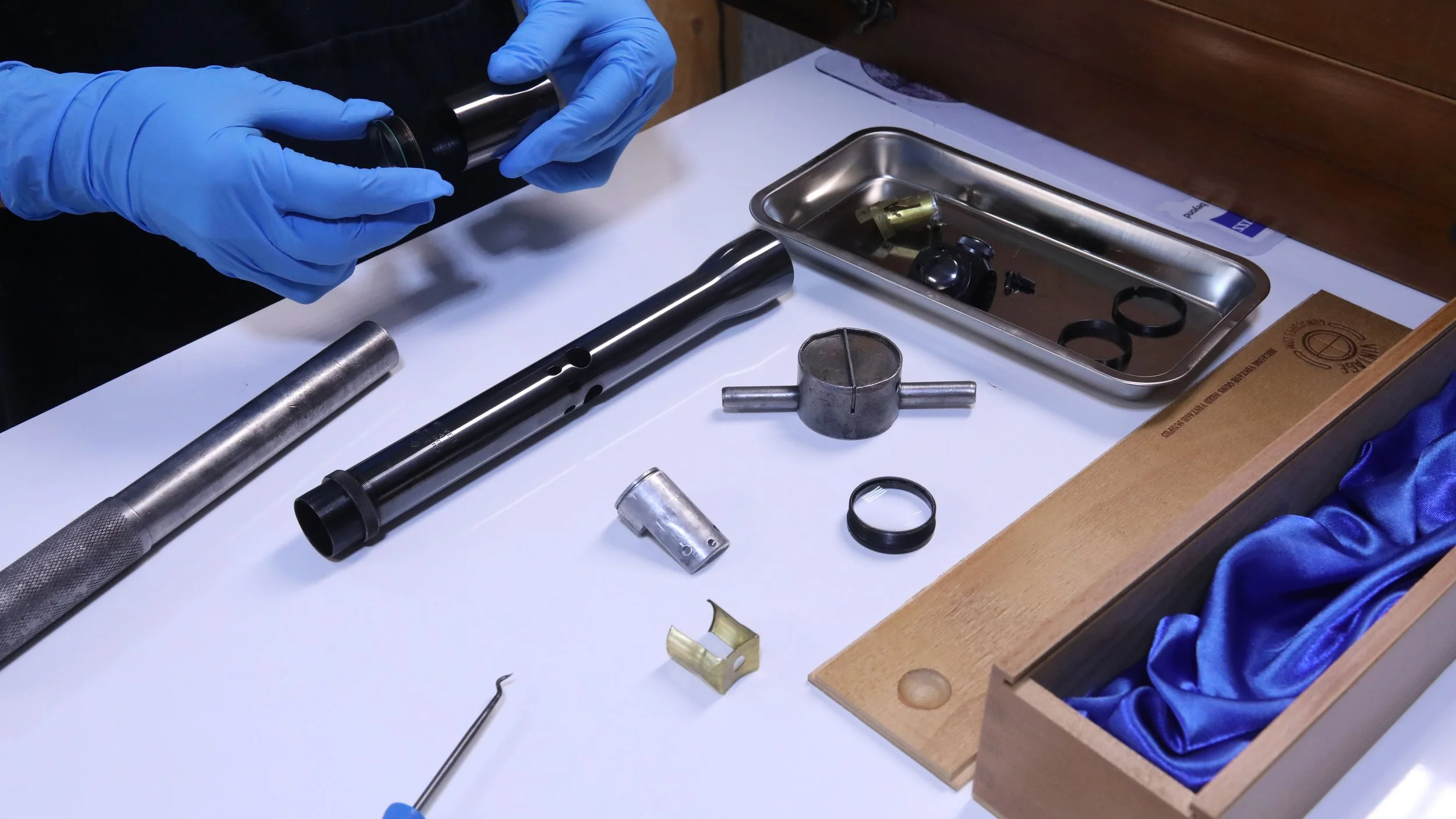 An internal and external cleaning, paying special attention to the various glass surfaces. A basic vintage scope has around 18 glass surfaces, most of them cemented together. Many people think vintage scopes are not bright. In fact, many vintage scopes have terrific luminosity ratings, some even rivaling today’s scopes. However, 50-100 years of laminate glue breakdown plus scale buildup on multiple high-magnification lenses, unprotected by nitrogen purging for so many years, translates into big losses in luminosity with even the slightest amount of grime/scale/delam. Our most common testimonial is “Wow, I don’t think this scope was this bright when it was new!” Well, it was. Decades of oxygen inside the tube simply did its damage, and we reversed that.